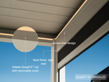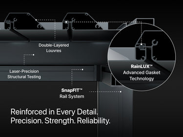 Built to endure. Designed to withstand extreme weather, the Series 3 pergola features a new quiet motor that’s over 20% stronger, ensuring exceptional durability and smoother operation. -